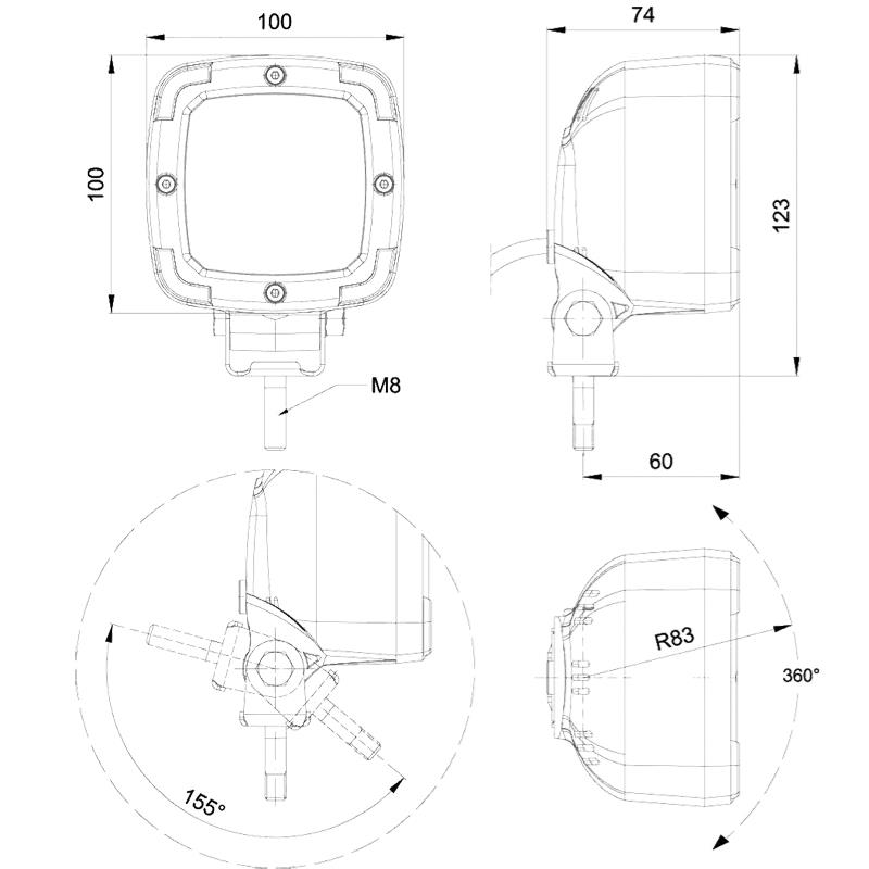 Anwendung für "Arbeitsscheinwerfer mit 9 Leuchtdioden 1300 Lumen "