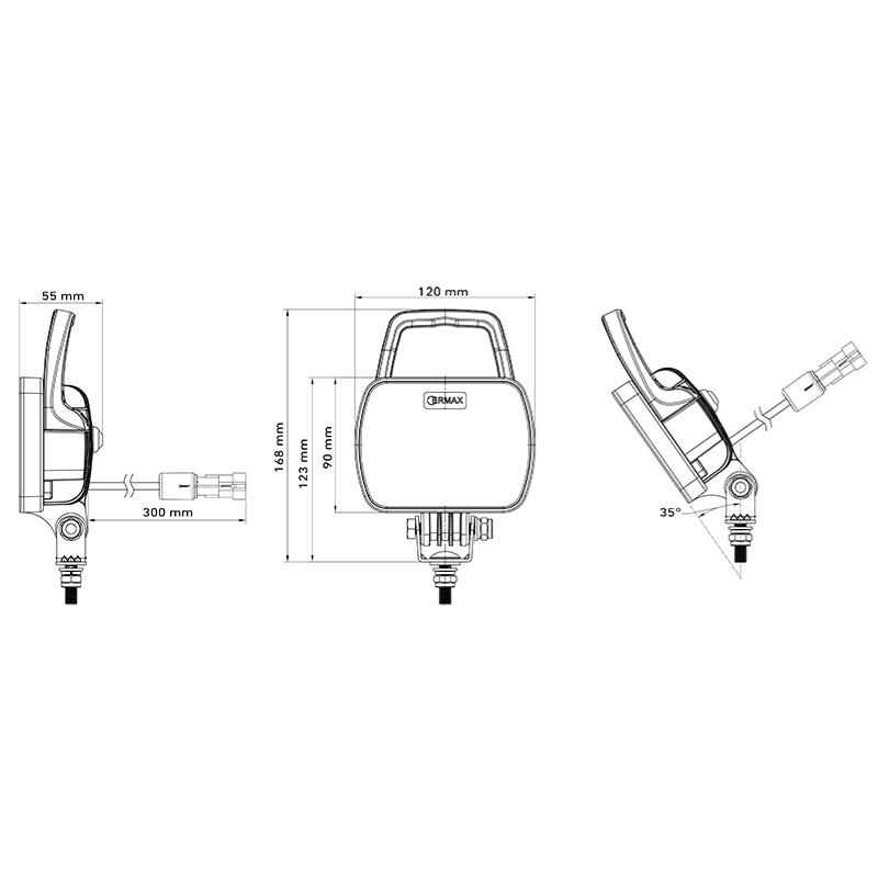 auch geprüft als Rückfahrscheinwerfer mit 35 Grad Neigung bei Vertikal Montage
